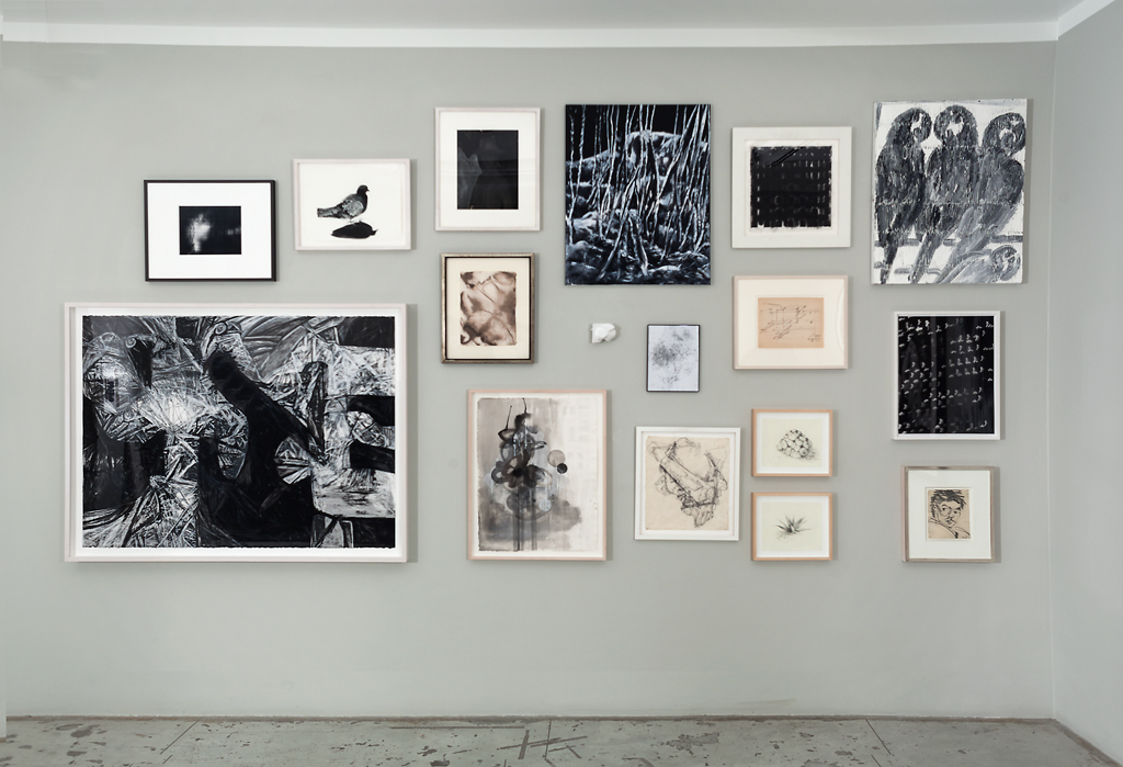 Installation shot of one wall of the Black & White: Contemporary & Modern Positions